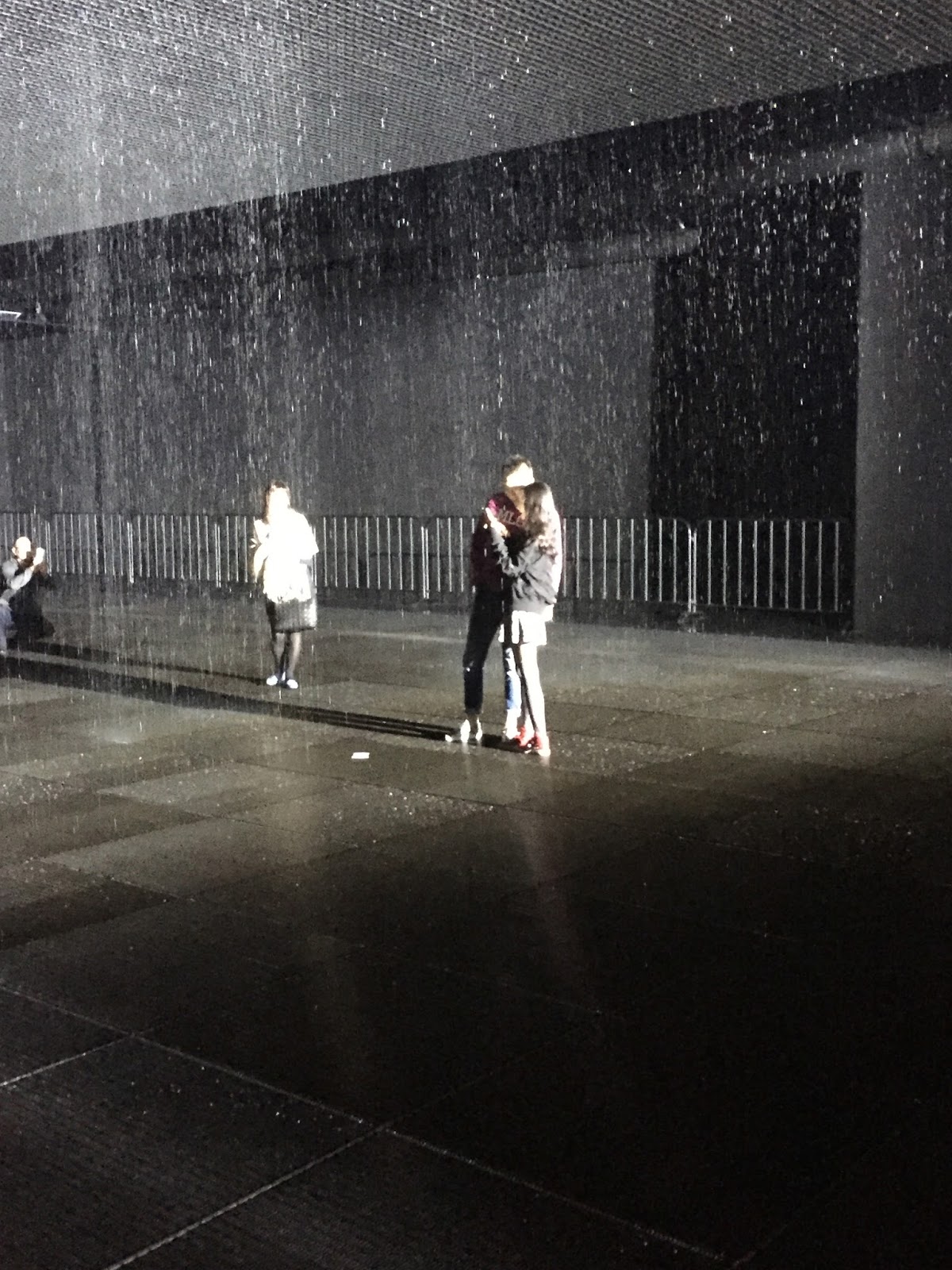 Well if you are interested in a 15 hour plane ride, come to Shanghai to the Yuz Museum. The Rain Room is here and there was no line! We walked right in and got to stay as long as we wanted. The rain is controlled by sensors that sense us and the rain stops in the area of our body. You have to move slowly through the room otherwise you will get wet. Below are some pictures of our experience. My son was so scared to walk through so it's just me. It was definitely cool to experience and I'd recommend the exhibit to anybody visiting Shanghai but I would NOT wait in any line to see it.